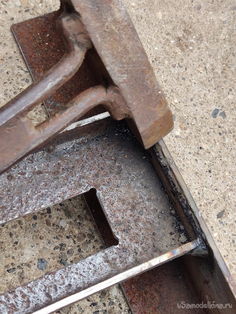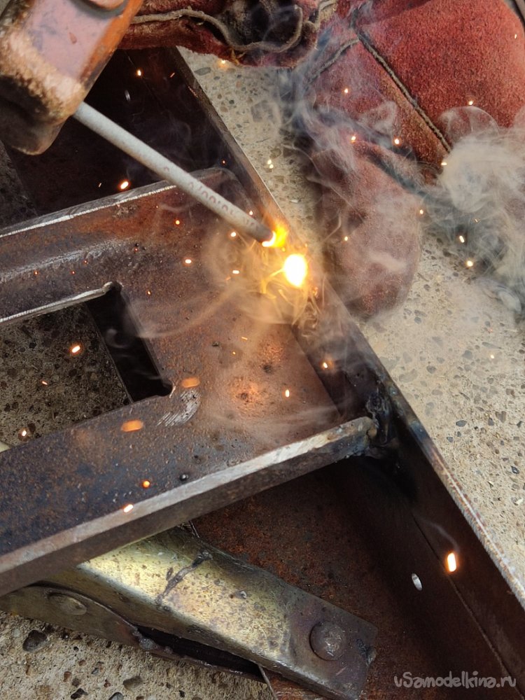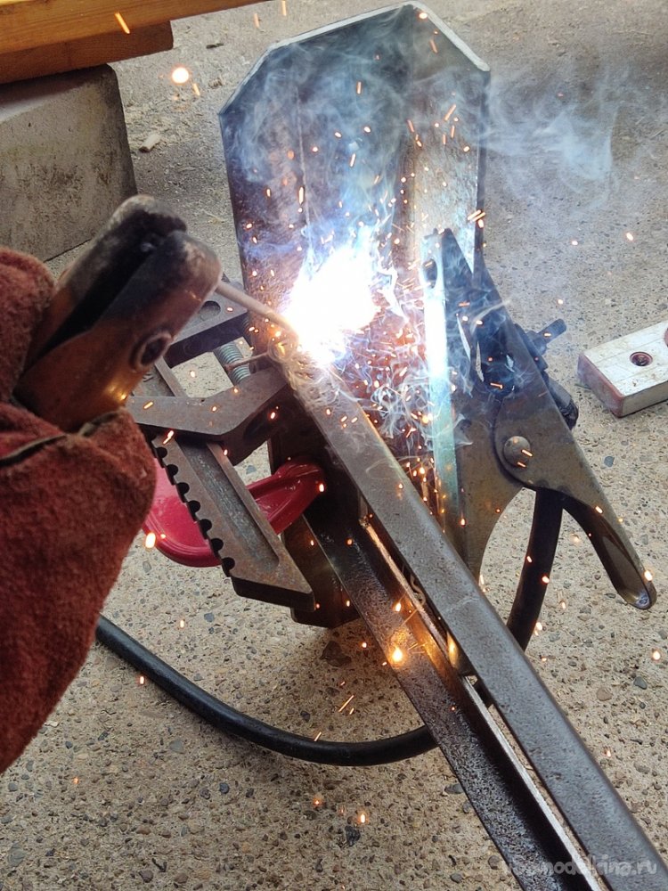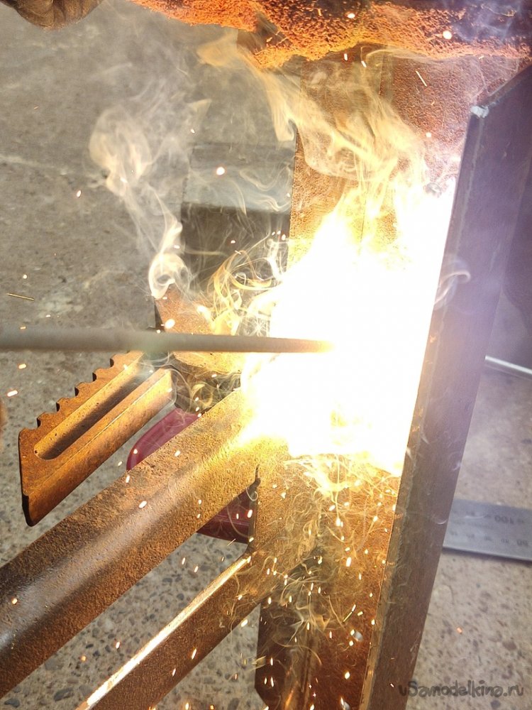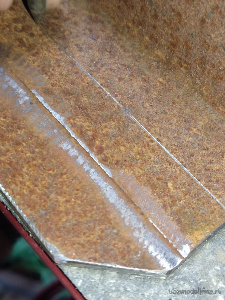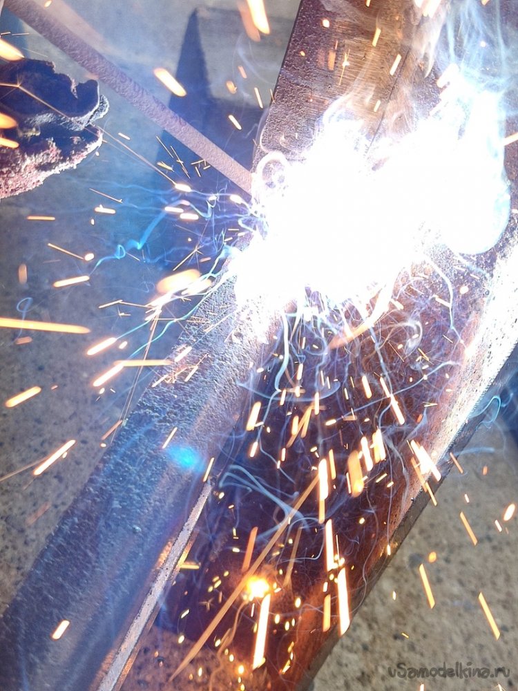 13. Привариваем с боков, далее проходим верхний стык. Когда хорошенько приварили, сбиваем лишний шлак