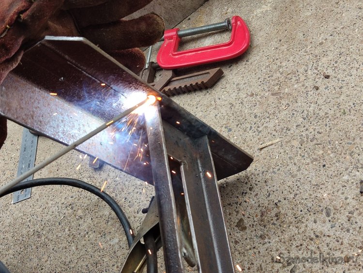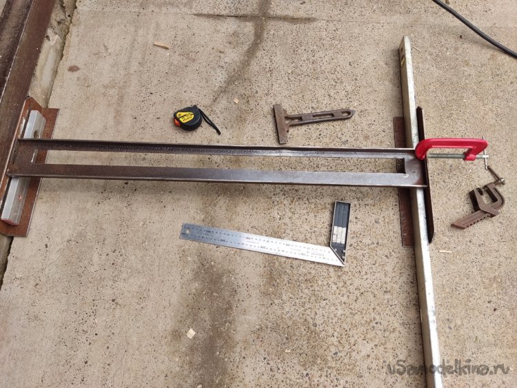 11. Теперь необходимо приварить «ножки » к направляющей по прямым углом, для этого дела желательно использовать струбцины.