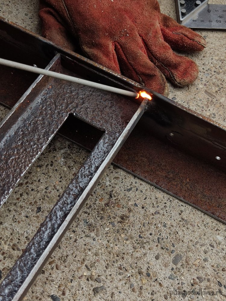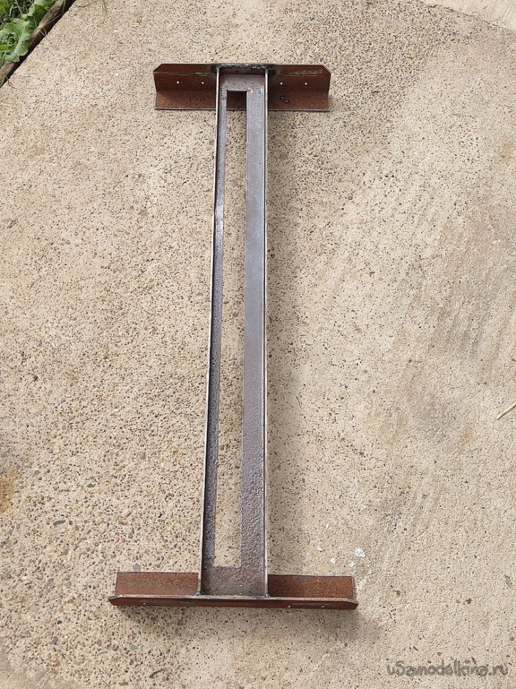 14. Угольником проверяем геометрию конструкции. Если всё хорошо движемся дальше, а именно привариваем по такому же алгоритму другой край направляющей к «ножке»