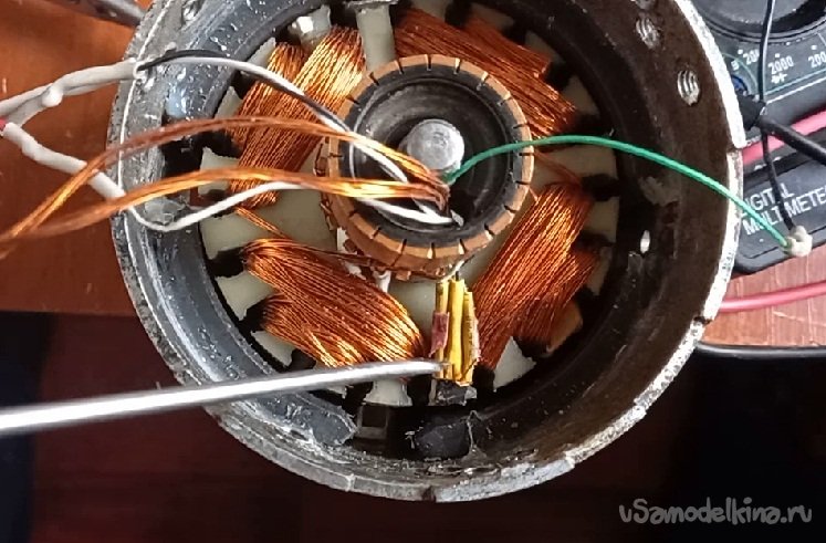 а – Допустим, имел бы я мощный понижающий трансформатор, возможно движок и запустился бы от сети в 50 Гц как насос в стиральной машинки, правда от 220 В. Но проверить не могу, трансформатора у меня нет.