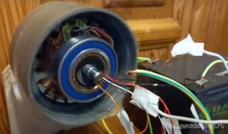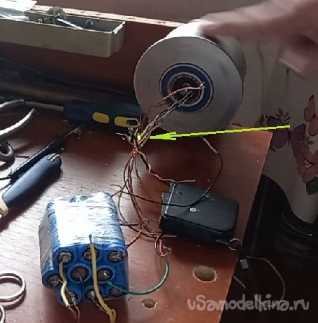 Схемку спаял воздушную, временную, что бы убедиться в правильности моего рассуждения. Подключил аккумуляторы и подал напряжение 5.3 В на датчики Холла. «БИНГО» - электромотор закрутился. Пробовал притормозить, тяжко. Осталось протестировать на напряжении 24 В и 36 В. С центровкой угадал путем высверливания, никакой вибрации.