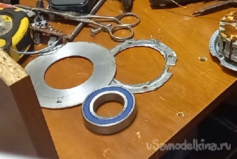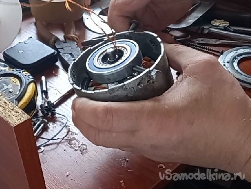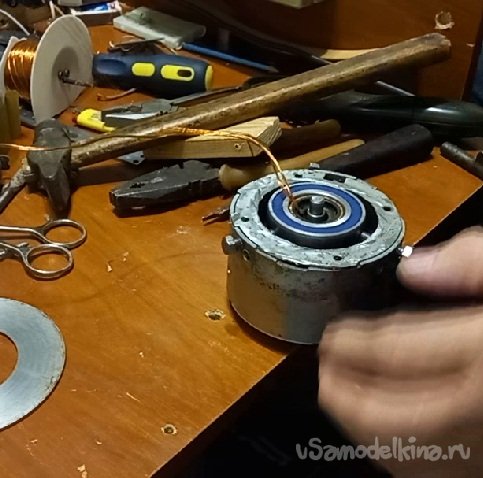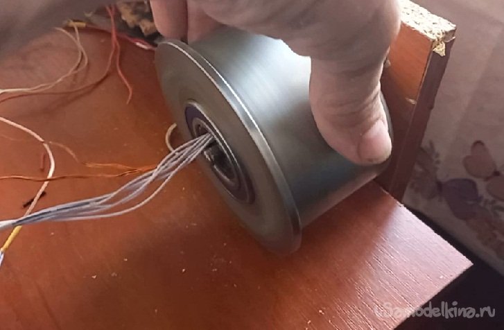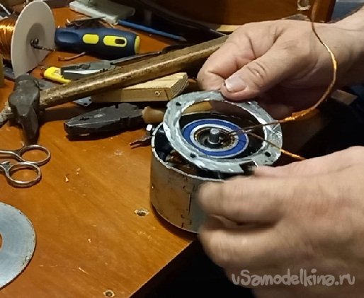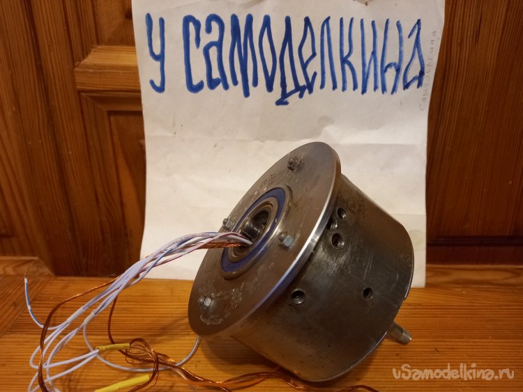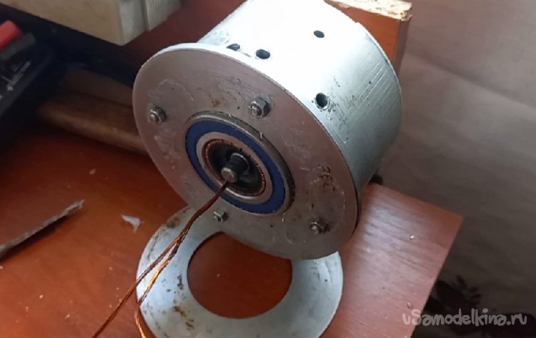 Поставленная задача выполнена. Я избавился от второй противофазной обмотки, увеличив сечение, а соответственно и мощность данного проекта, а так же увеличив внутренний объем двигателя под медь получил жесткую опорную посадку на подшипник за счет применения металлического кольца.