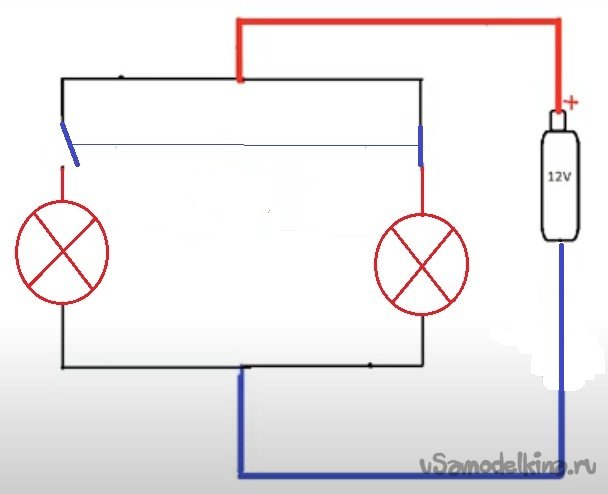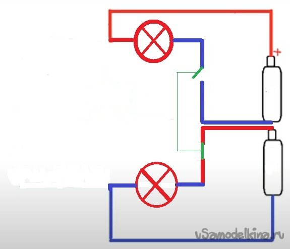 в - А есть еще вариант на двух аккумуляторах. Допустим, возьмем литиевый аккумулятор 3.7 В 2А и через генератор импульсов поочередно подключим две лампочки от фонарика. Через некоторое время, назовем его «Х», аккумулятор разрядился.