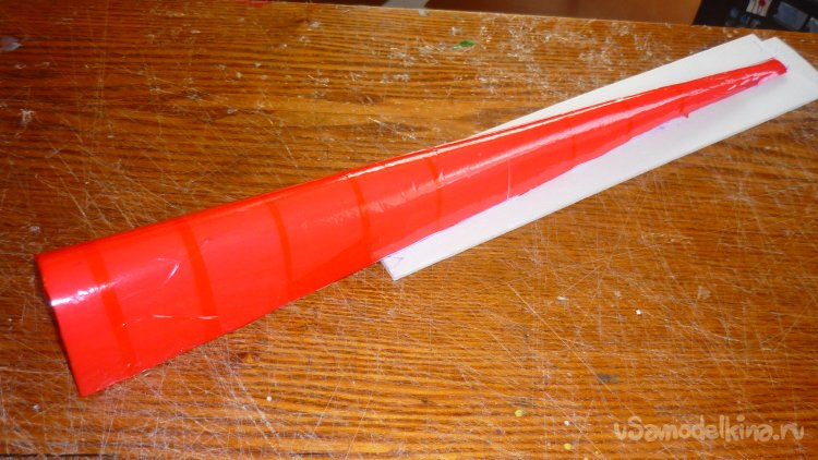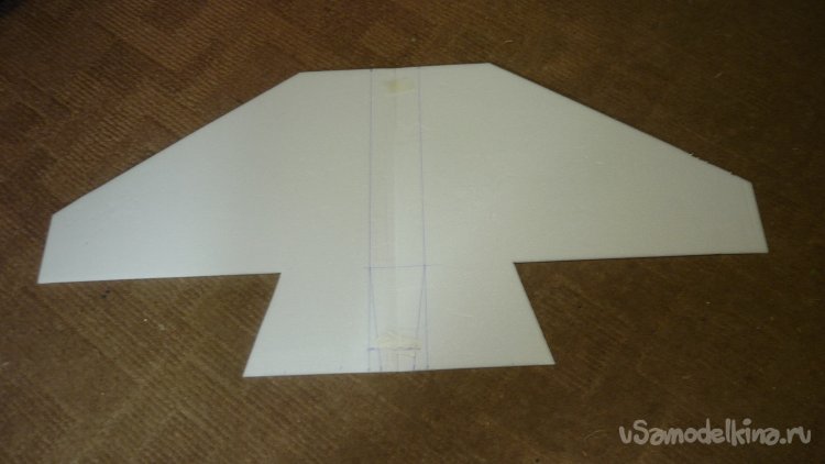 Вырезал заготовку хвостовой части несущей плоскости, примерил.