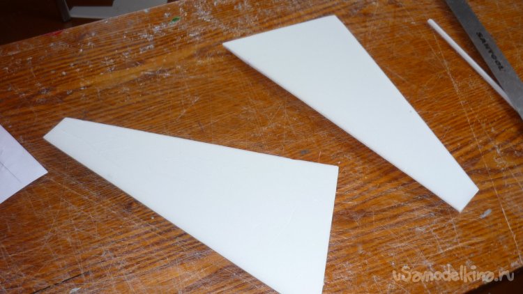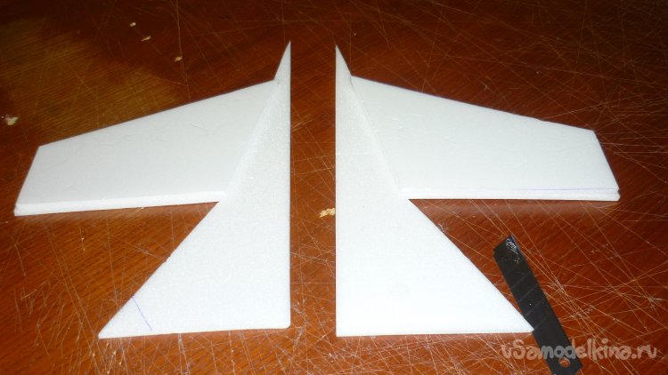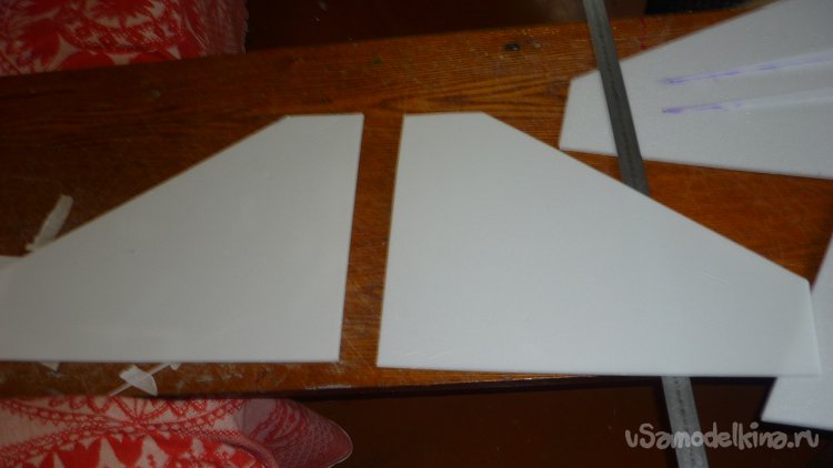 Сразу же вырезал заготовки для руля высоты. Примерил.