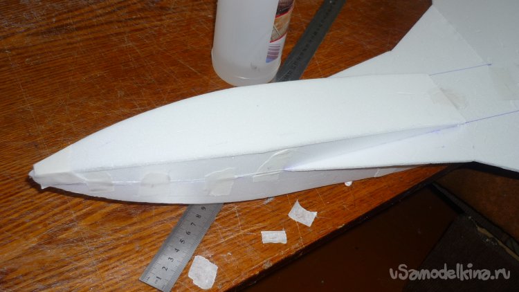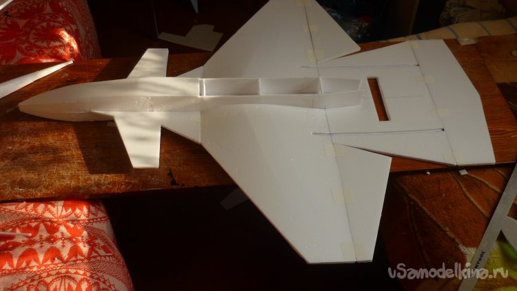 Вырезал заготовки для нижней, носовой части фюзеляжа.