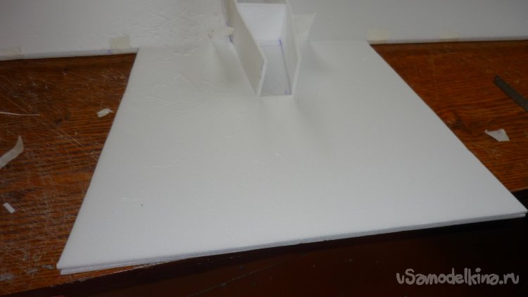 Из пенопласта вырезал заготовку, доля установки мотора.