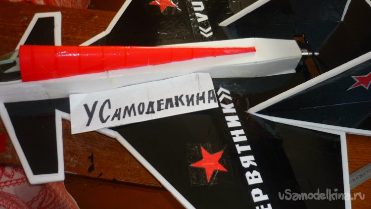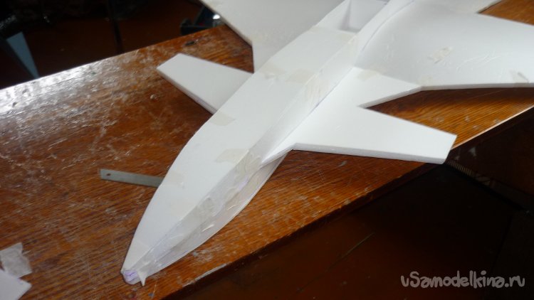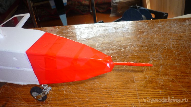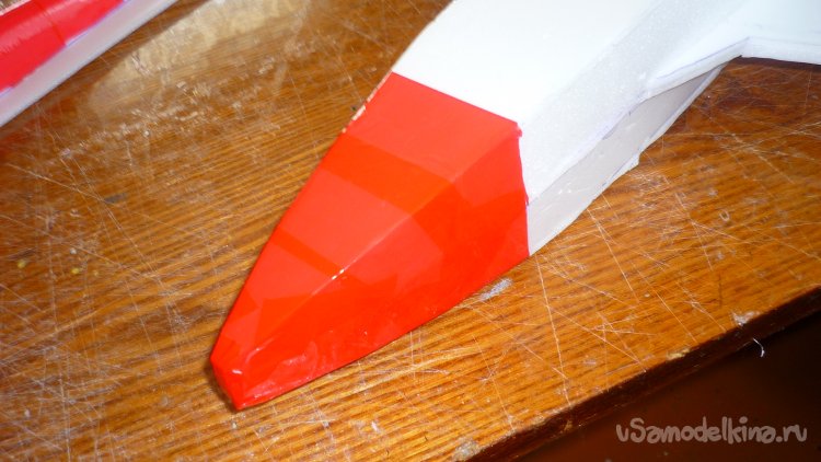 Носовую часть фюзеляжа обтянул красным скотчем.