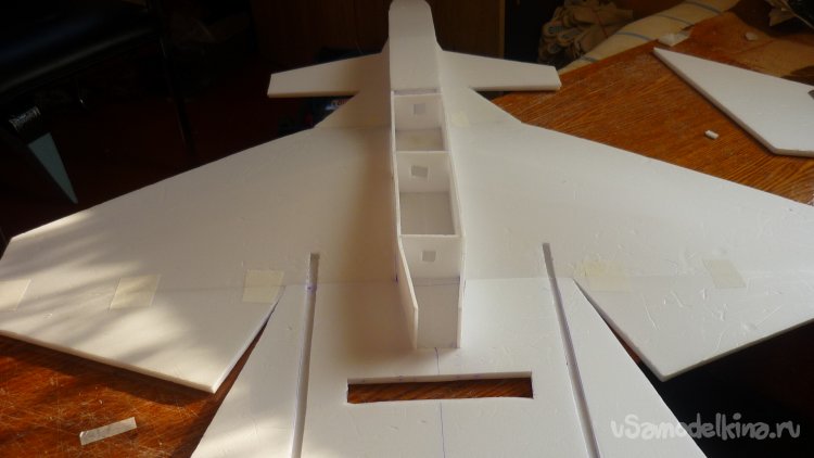 На бумажный , малярный скотч навесил элероны, так же как навешивал руль высоты.