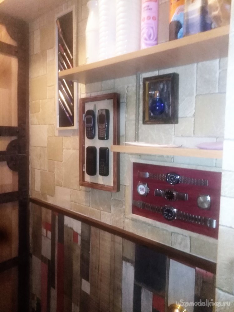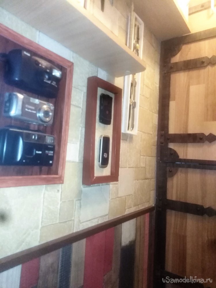 Уверен, что у каждого, дома скопилось немало отслуживших верой и правдой различных вещей и предметов. Вот и лежат они мертвым грузом в шкафчиках, коробочках и на полочках, собирая пыль и лишь воспоминания о своем былом предназначении, когда попадаются в поле нашего зрения. Вот и подумал я: "А почему и нет ?" и решил дать всем этим "полезностям" еще одно предназначение - стать экспонатами "вернисажа ностальгии". Не стал заморачиваться тратой денег на рамки и сделал их также из отходных стройматериалов. В ход пошли остатки панелей ПВХ, молдинги, бордюры, галтели, картонные коробки, С помощью акриловых красок и лака, клея ПВА оформил рамки для экспонатов. Что получилось, можете увидеть на снимках. Возможно кого-то заинтересует и ширма-дверца за унитазом, выполненная из остатков ламината. Клёпки на ней сделаны из самодельного композита - смеси крахмала,клея ПВА и растительного масла ,залитого в форму полусфер. В качестве формы была использована полимерная детская забава "антистресс". Так что идея получилась неплохой и была одобрена друзьями и близкими. Остались еще места на стенах, да и "экспонатов" для вернисажа тоже.)) Зато освободились и места в шкафчиках, коробочках и полочках..))