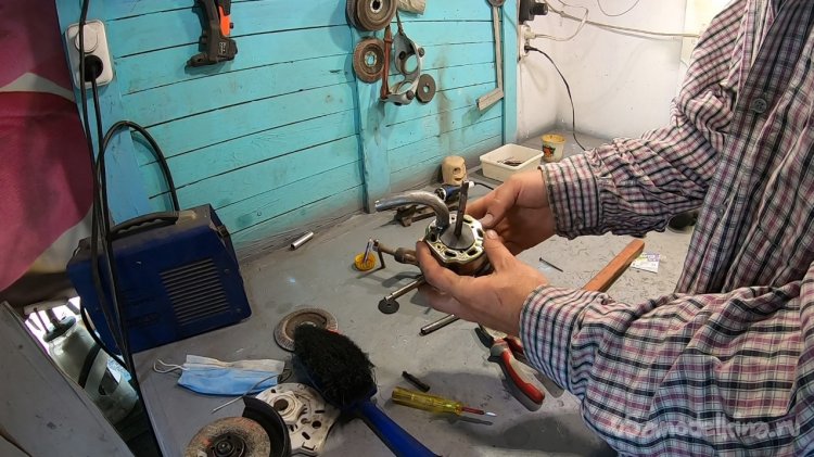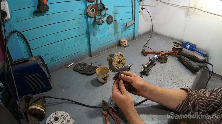 Далее нашел кусок крана и выпилил из него патрубки. Сверлим отверстие в корпусе и припаиваем патрубки на место. Припаивать нужно не жалея припоя, в первый раз у меня отломался патрубок от вибраций и тугого шланга.