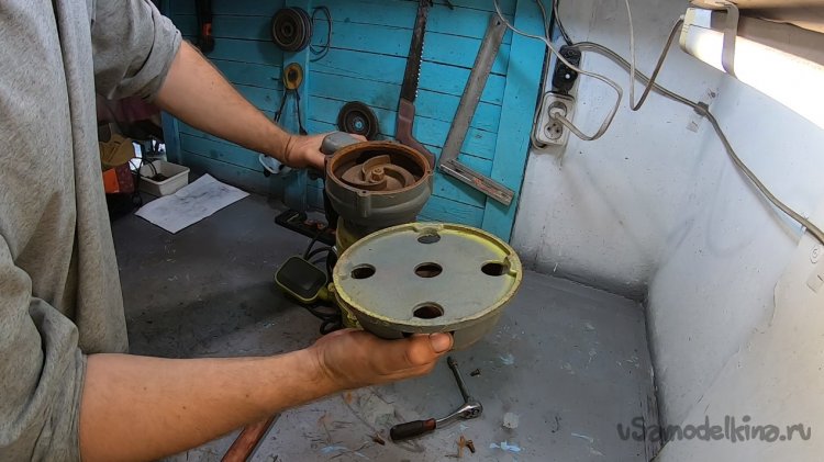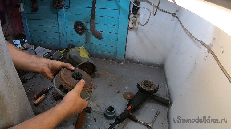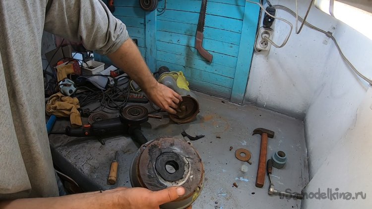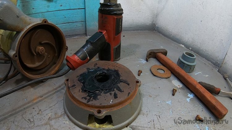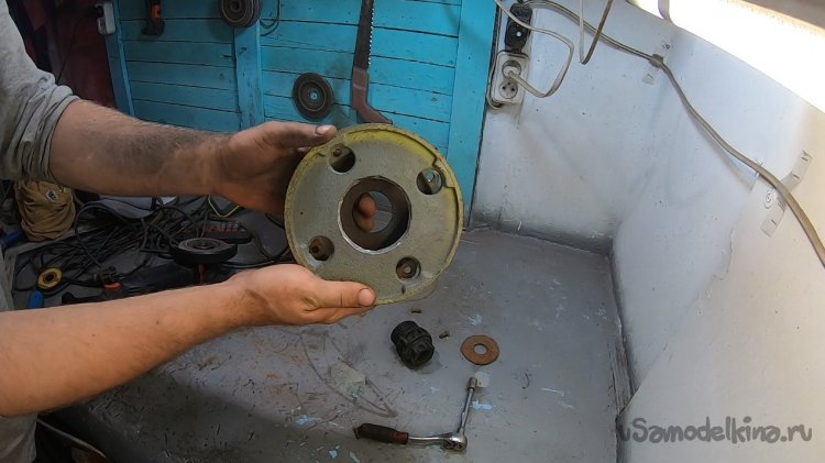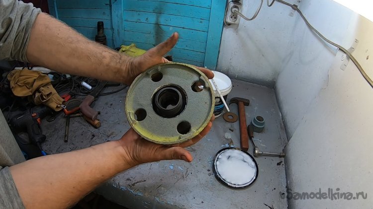 Снял опору и вырезал отверстие, чтобы зашел фитинг под трубу пнд 32.