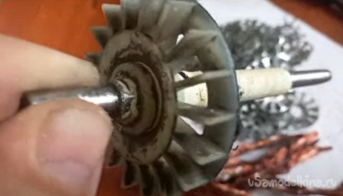 Сначала потребовалось освободить вал якоря от металла, подробности опускаю, это сможет каждый, вал имеет требуемые размеры, посадочные места и не разбитые подшипники. Спустя час на столе была кучка чермета и немного меди.