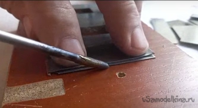 Пластиковыми полосками ограничил пространство вокруг сердечников, которое заполнил металлической стружкой. Утрамбовав ее, пропитал клеем и получил замкнутый магнитопровод.