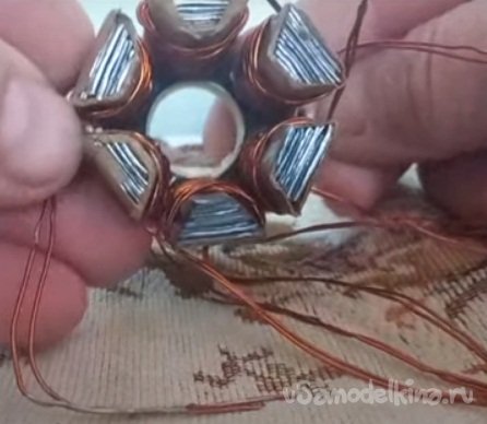 Катушки намотал двухжильным проводом каждая жила 0.6 мм. В каждой фазе тридцать два витка не двух катушках. Подключение выполнил звездой. Был настолько уверенный в правильности своих расчетов, что только после намотки провода решил проверить, а нет ли зацепов ротора и статора в собранном состоянии, а так же проверить на залипание. Пронесло, все вращатся в режиме.