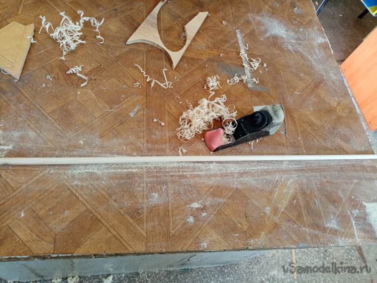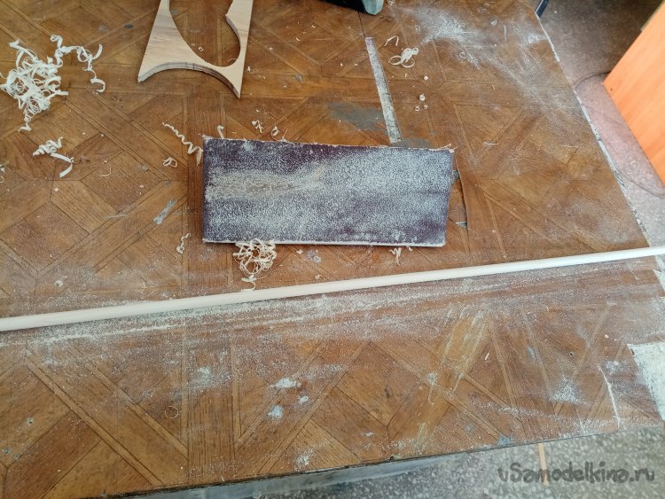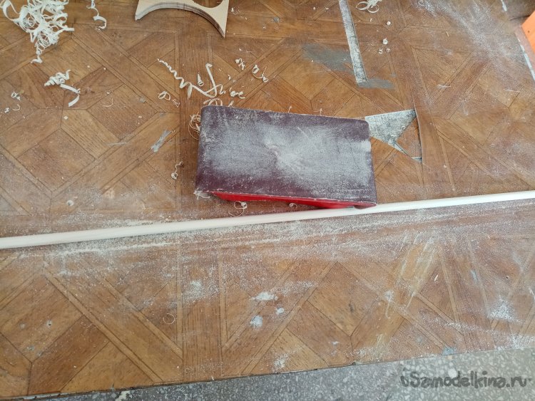 При помощи маленького металлического рубанка пытаюсь придать заготовке круглую форму. Немного шкуркой.