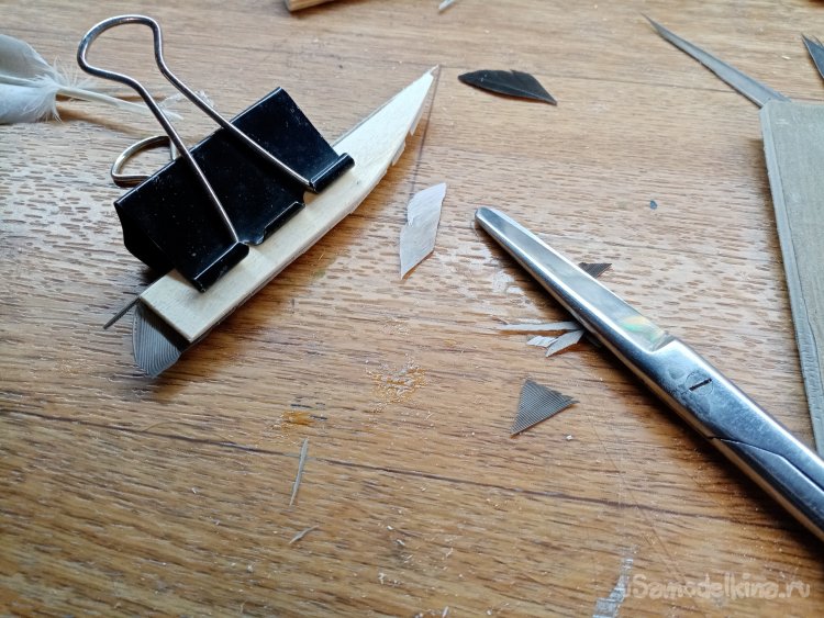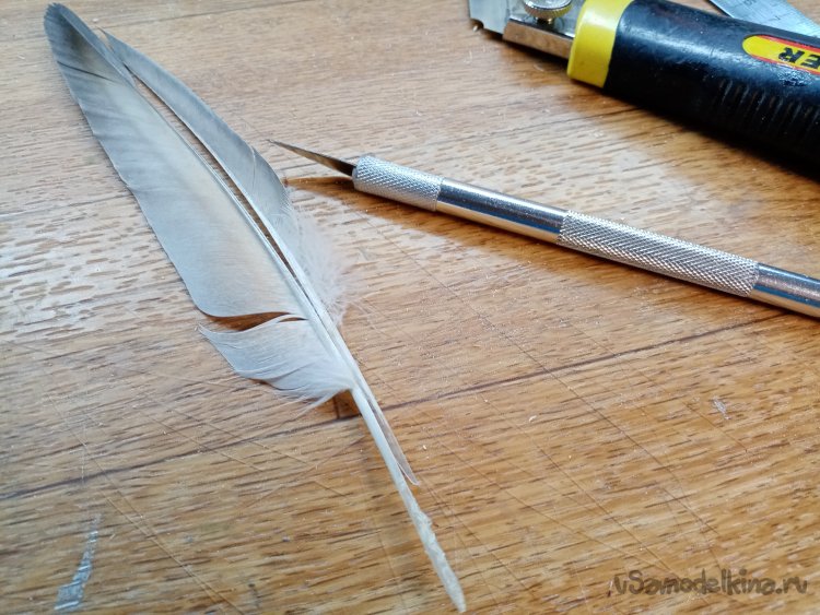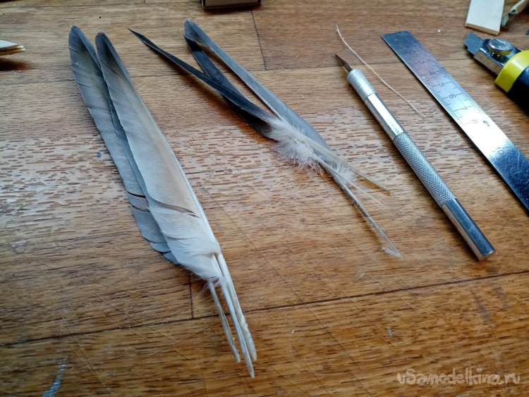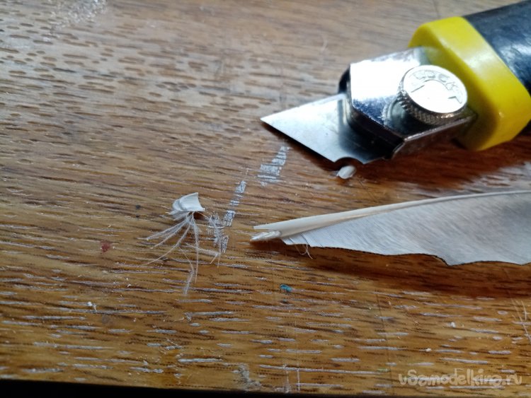 Ножом подрезаю окончания перьев.