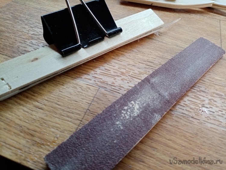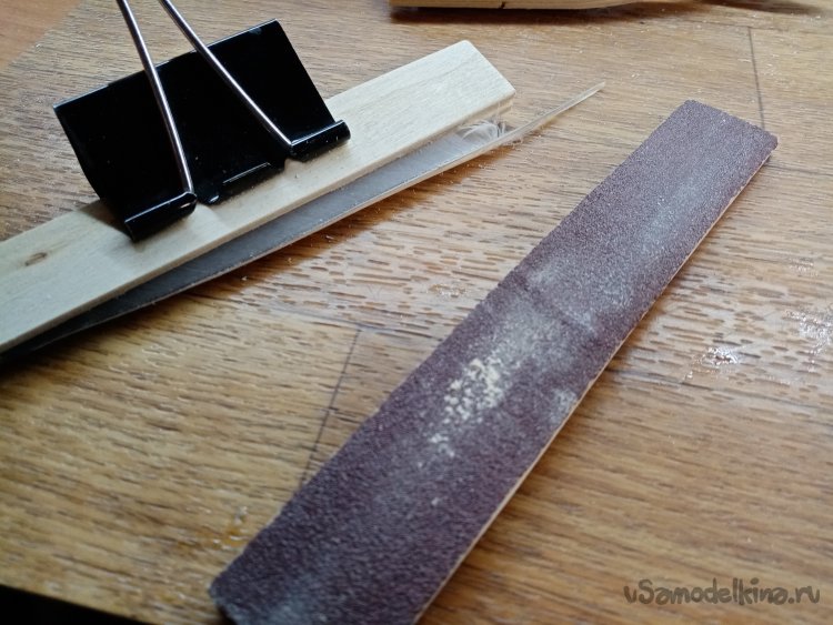 Зажимаю каждую заготовку в прямоугольный держатель и немного подравниваю рез при помощи утюжка со шкуркой.