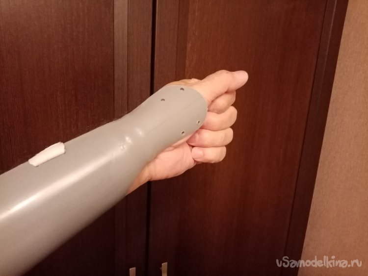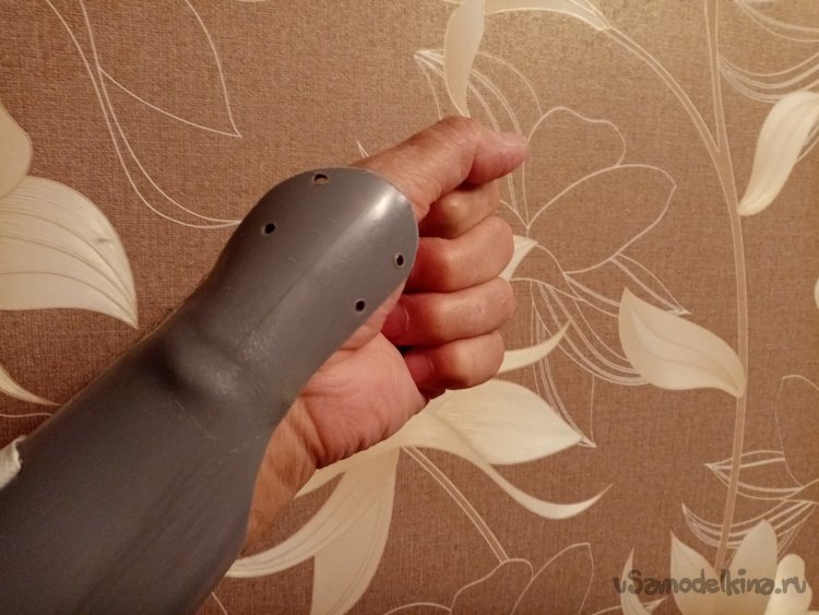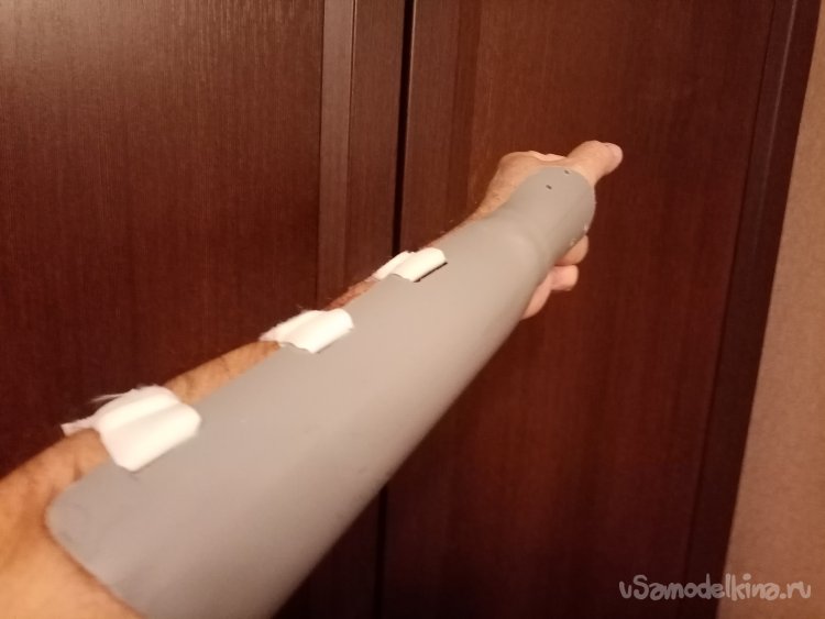 Но это еще не конец эпопеи. После пробных стрельб болела левая рука. Содрал тетивой. Решил изготовить защиту. Из фановой пластиковой трубы.
