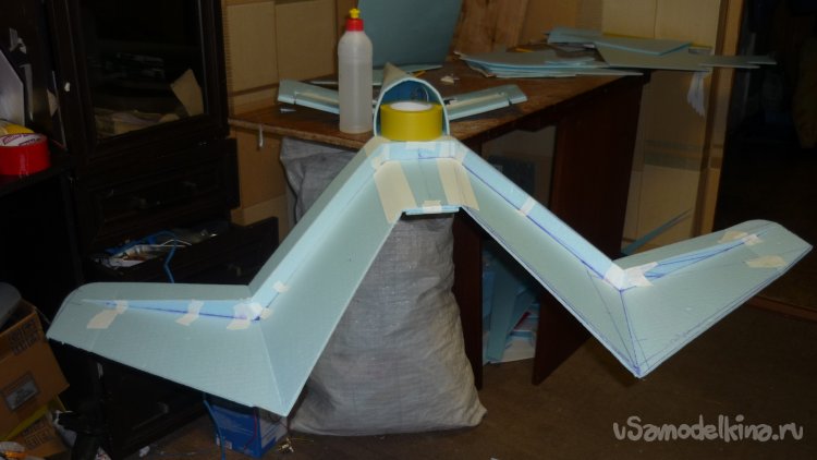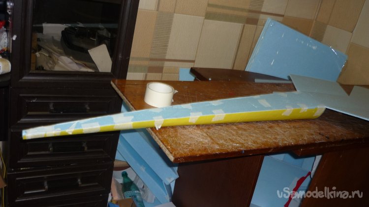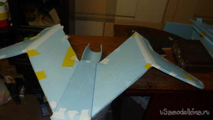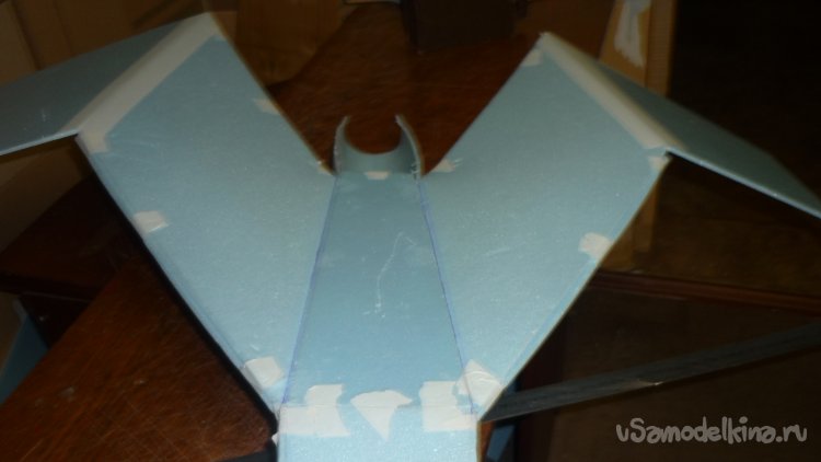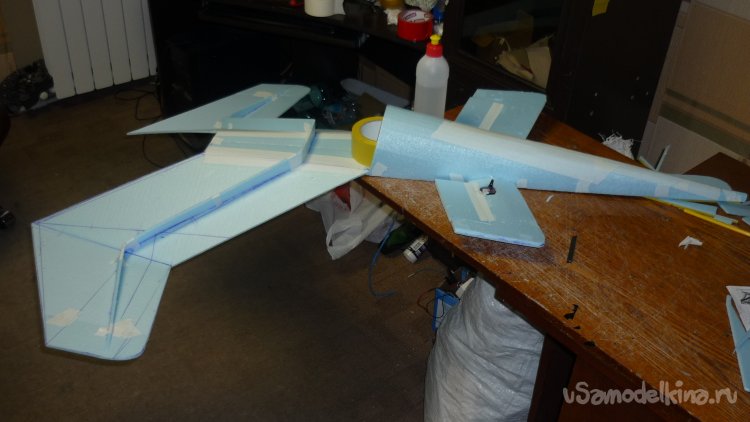 На несущую поверхность вклеил внутренние , вертикальные перегородки фюзеляжа.