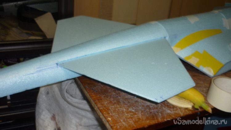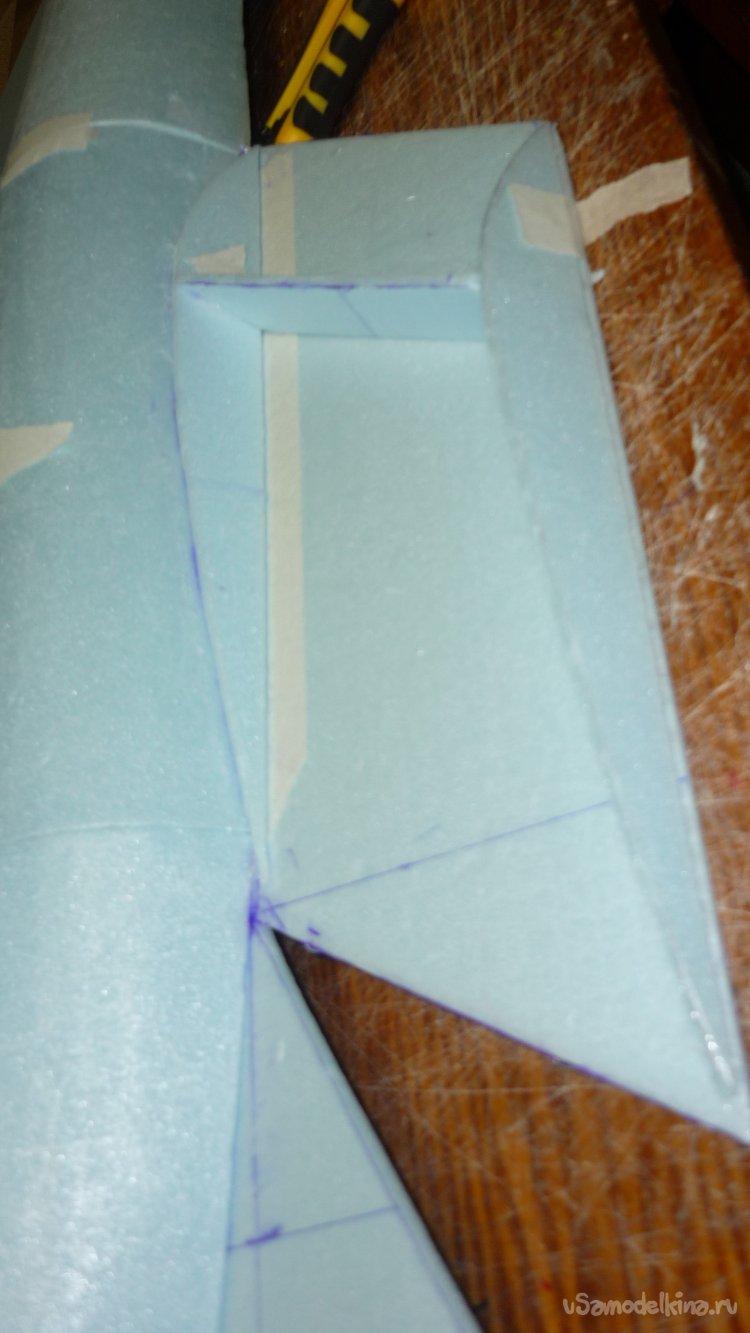 Сделал прорези в носовой части фюзеляжа и примерил нижнюю плоскость ПГО.