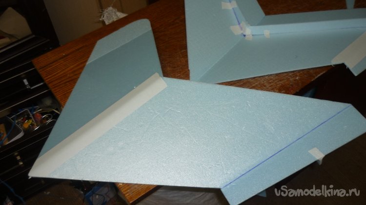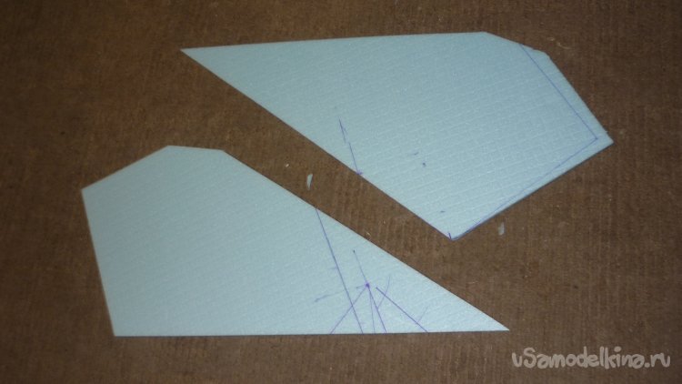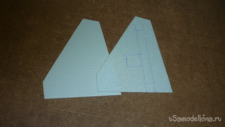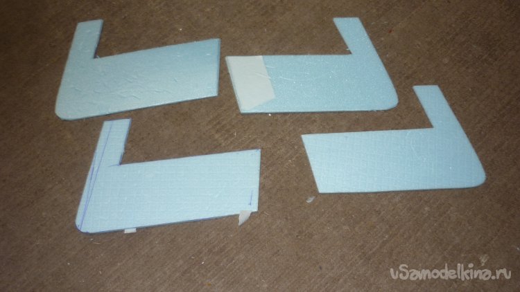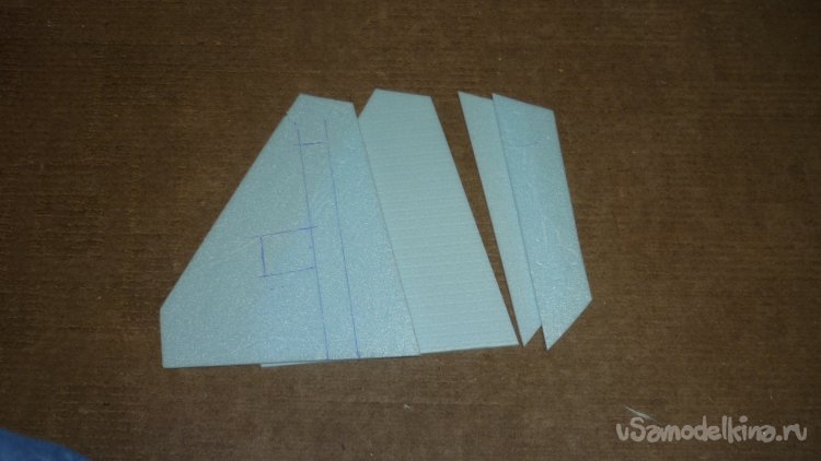 Вырезал заготовки руля высоты второго слоя внешней обшивки хвостовой части модели и элероны