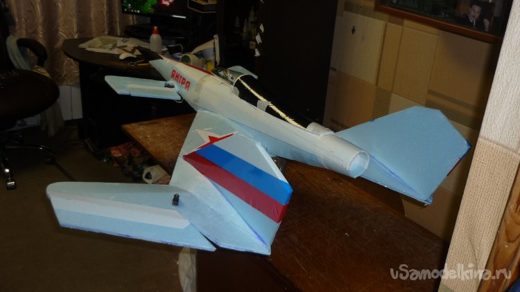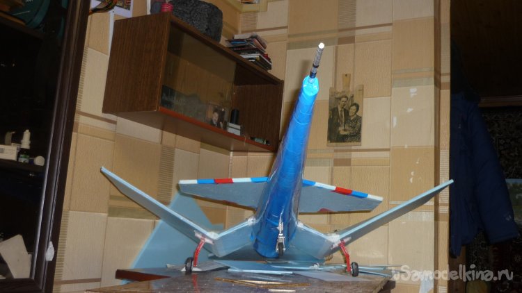 .Всё смонтировал, обтянул модель цветным скотчем, нанёс надписи и смонтировал шасси. Очень сожалею, но фотографии не сохранились.
