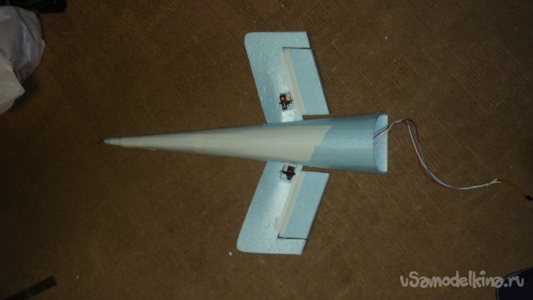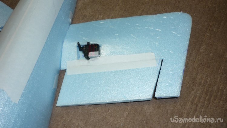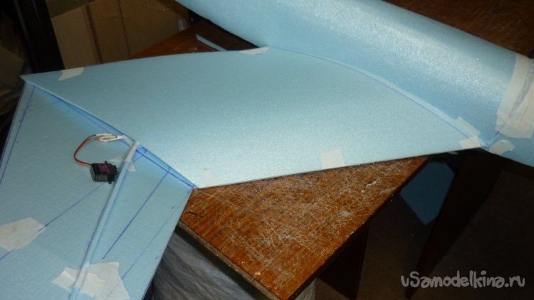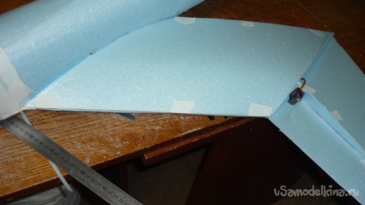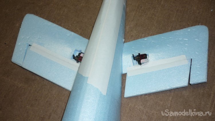 Разметил и смонтировал сервомашинки для управления элеронами.
