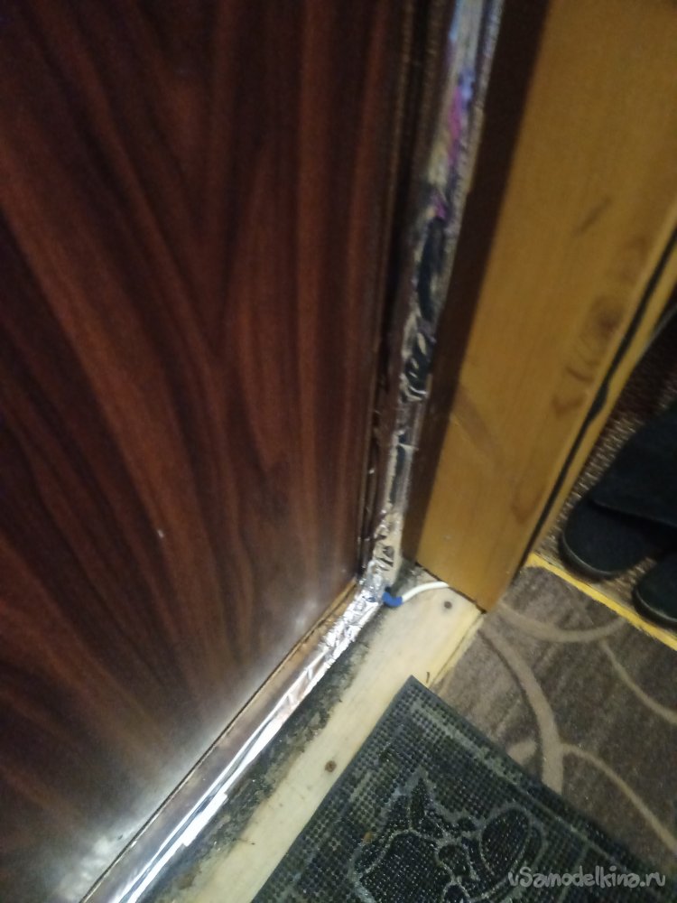 На даче (дом бревенчатый), входная дверь стоит простая, видимо предыдущий хозяин не подумал или не хотел думать о последствиях этого решения. Весной поставим дверь с терморазрывом, а пока надо как-то решить данную проблему. Купил 6 метров греющего кабеля 16Вт/м. и приступил к работе.