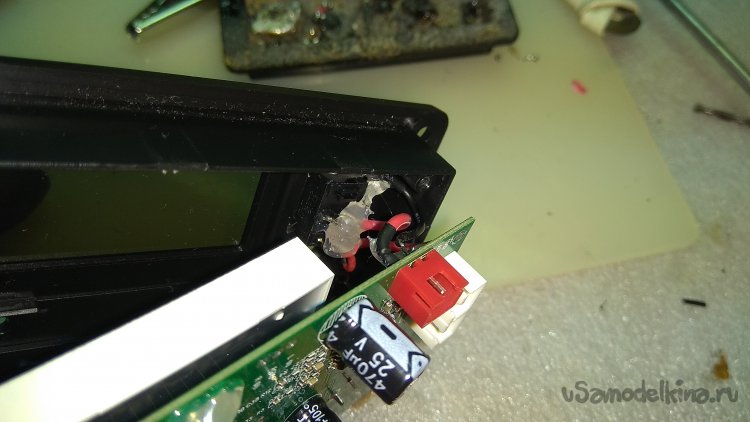 Пробуем собирать, главное, чтобы клей и провода ни мешали сборке. Всё собралось. Прикручиваю саморезами плату на место, проверяю работу. Получилось, работает.