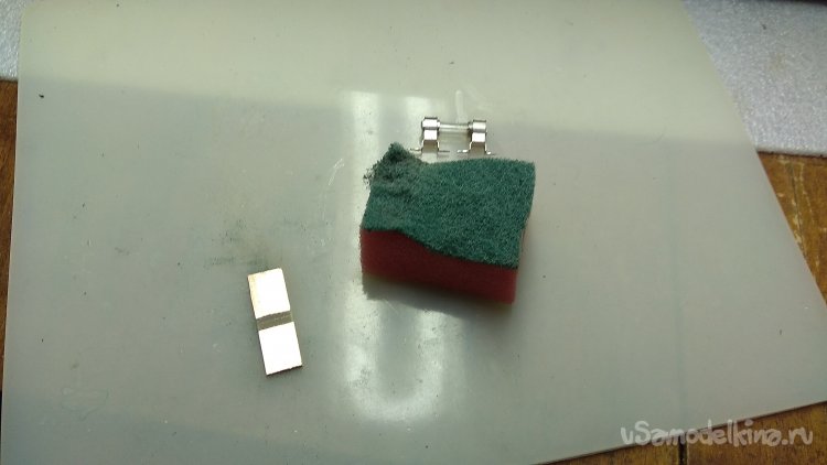 Делаю держатель из пары контактов и кусочка фольгированного текстолита. Недавно смотрел ролик на YouTube, там советовали при отсутствии наждачки, зачистить окислы меди губкой для мытья посуды. Попробовал: классно, работает!