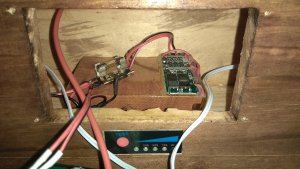 Аккумулятор приклеил в корпусе прямо за декодером на термоклей. С одной стороны прекрасная идея, дерево и пластик термоклеем прекрасно склеиваются. С другой стороны, когда потребовалось достать аккумулятор, а это впоследствии пришлось сделать (расскажу ниже), достать его было очень проблематично…