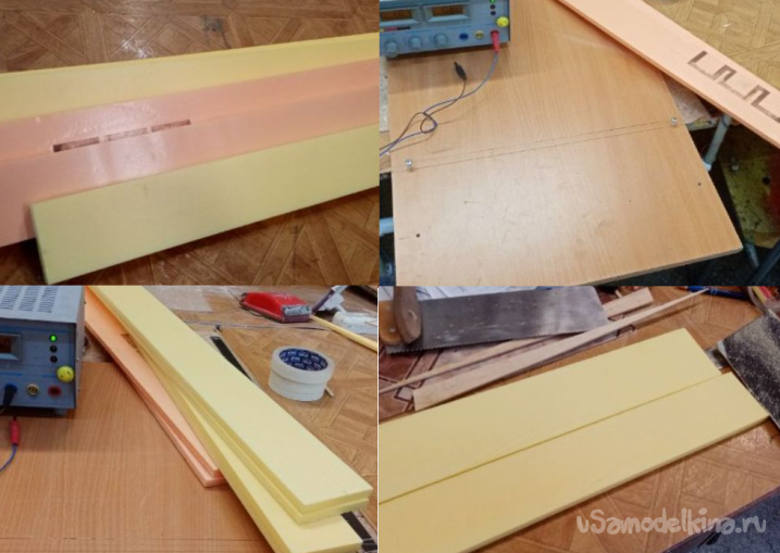 Резать на пластинки буду при помощи термолобзика и простейшего станка изготовленного из мебельного щита и парочки болтов. Которыми регулируется толщина реза.
