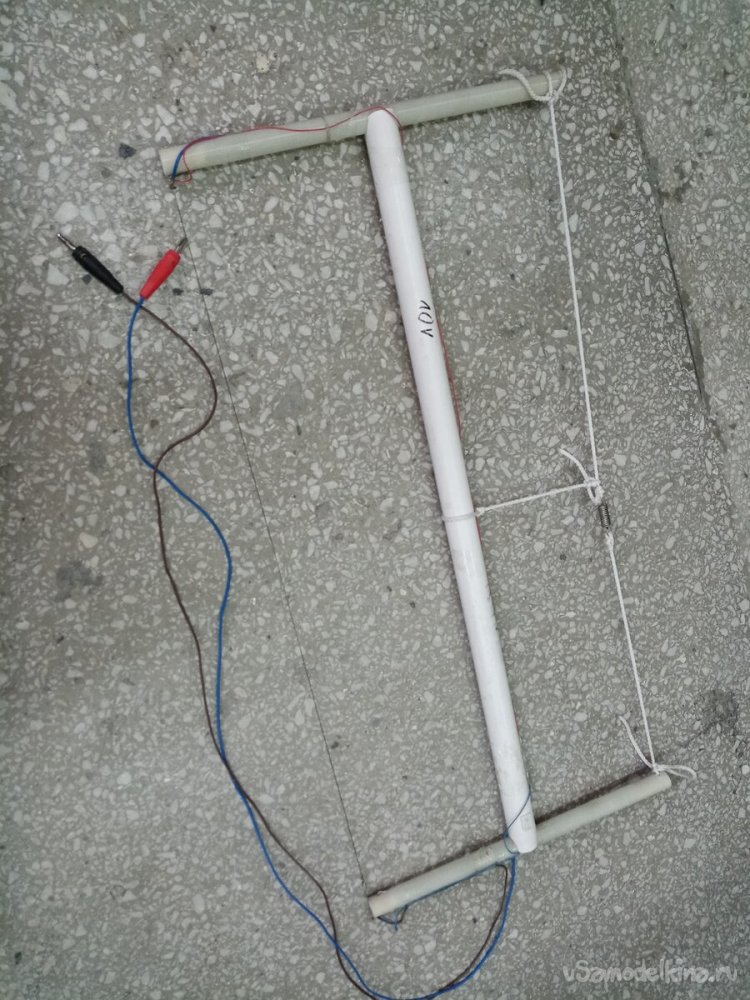 В качестве крючка буду использовать кусок алюминиевого провода. Вся конструкция достаточно легкая и такого диаметра проволоки должно хватить с избытком. Снимаю изоляцию, отрезаю нужную длину.