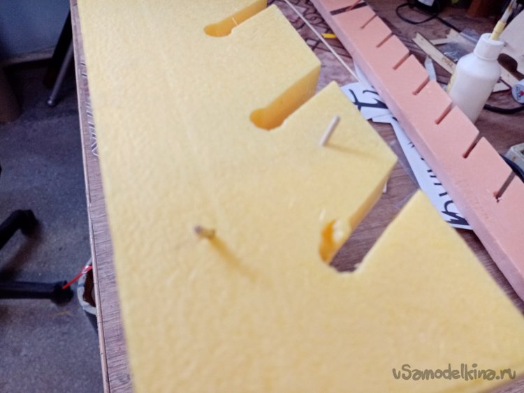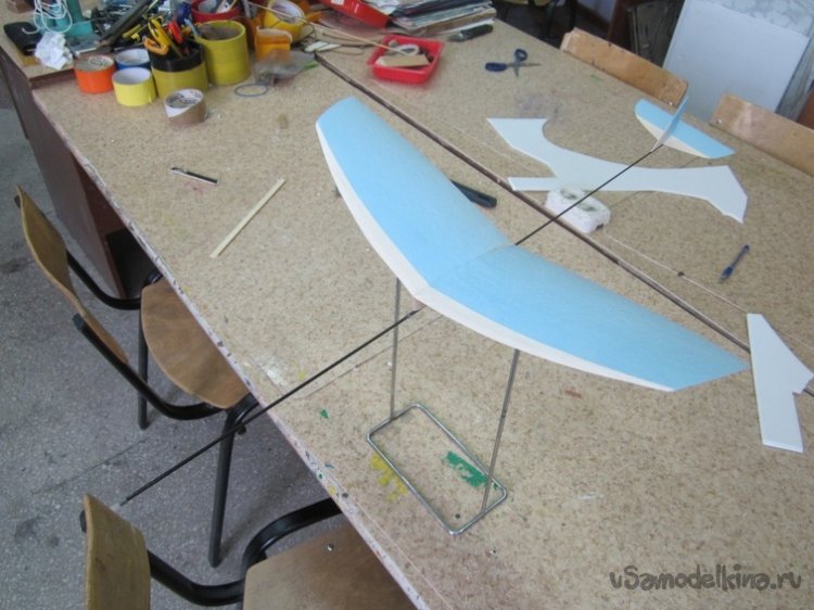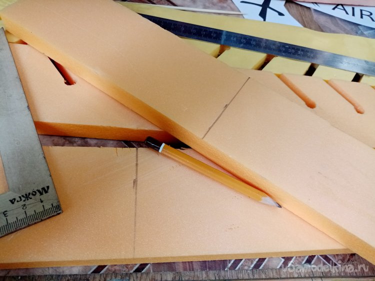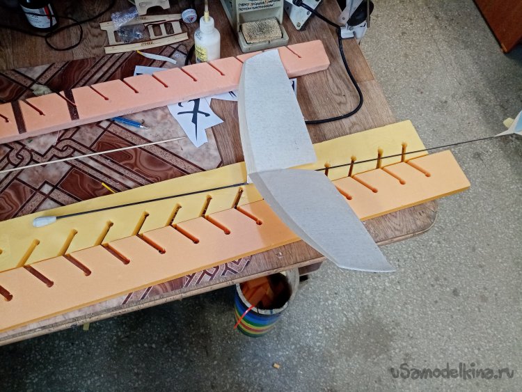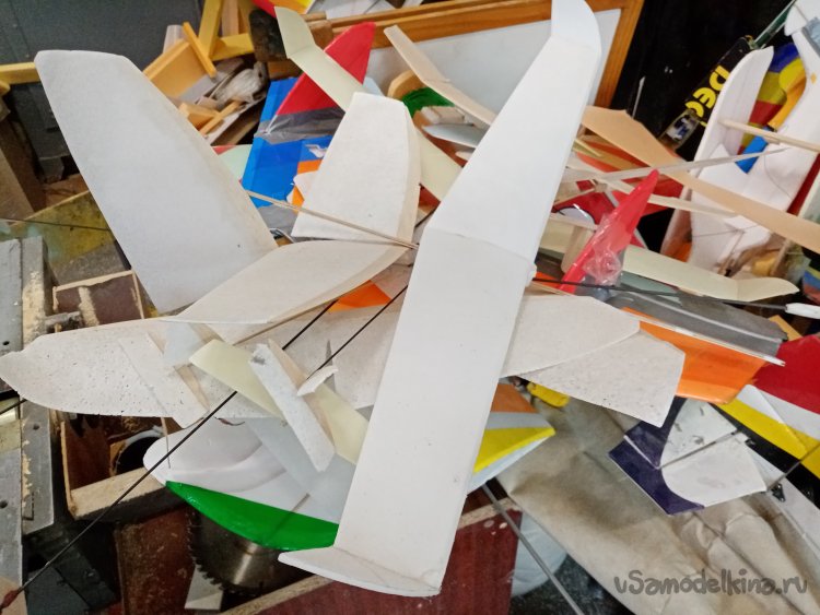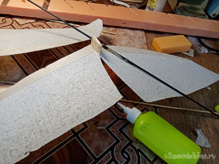 Приходится по новой изготавливать и хвостовое оперение. При помощи пластинок из легкой бальзы и резаного пенопласта, минимальной толщины. Хвостик должен быть максимально легким.