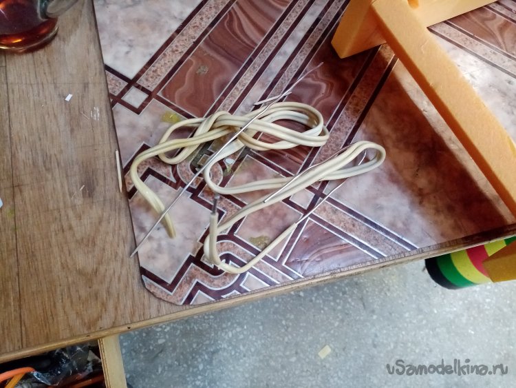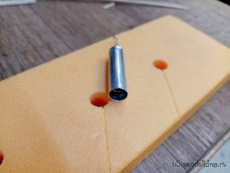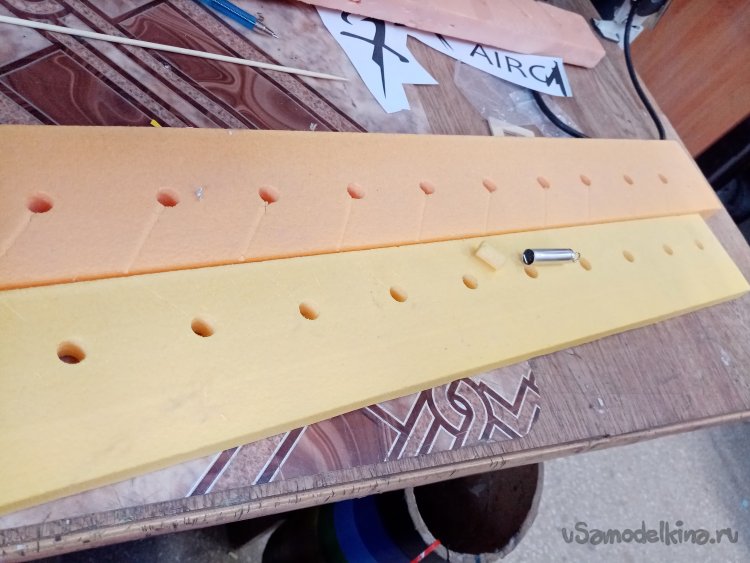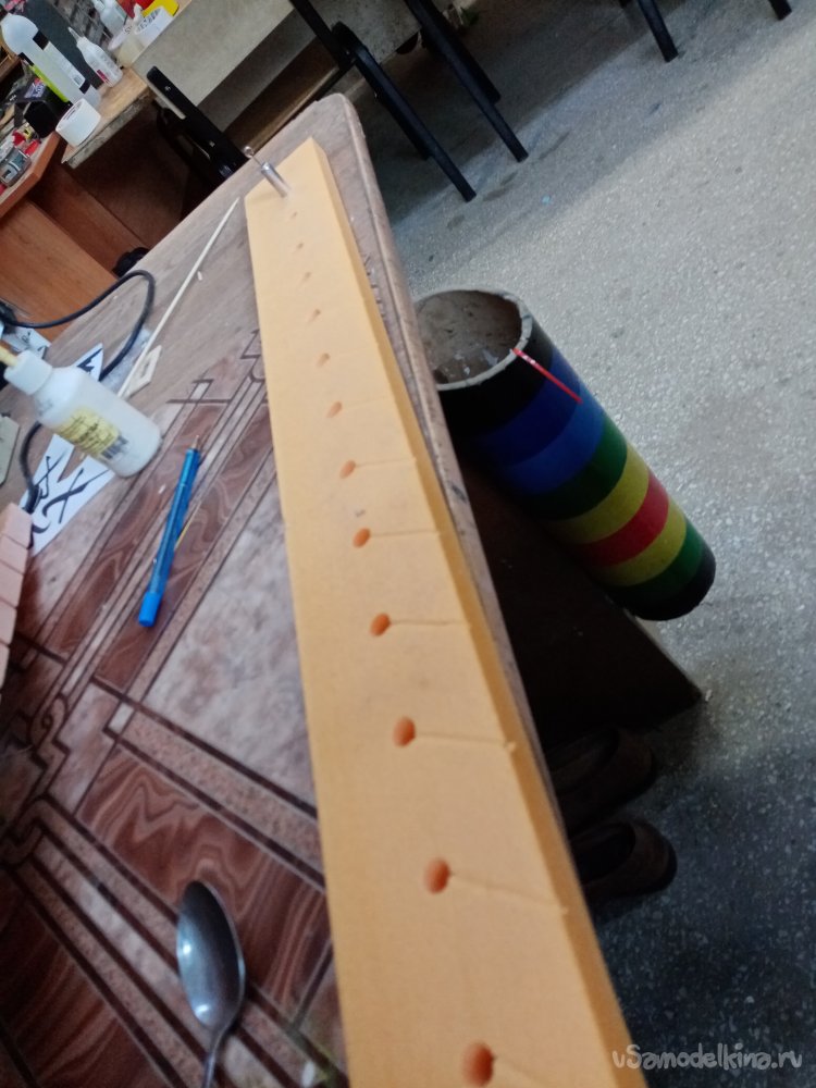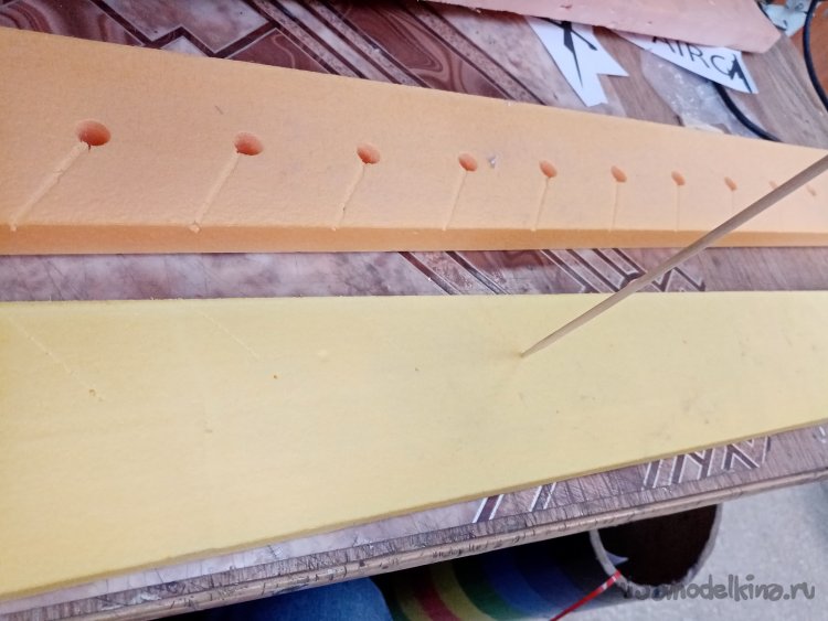 Подбираю трубочку нужного размера и прорезаю в боковой пенопластовой стенке отверстия.