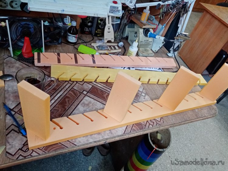 Для изготовления рамки держателя буду использовать обрезки утеплителя. Оставшиеся от изготовления моделей.