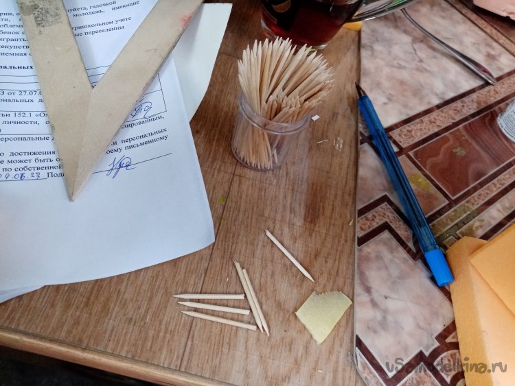 Для большей прочности еще и соединяю поперечины со стенками зубочистками.