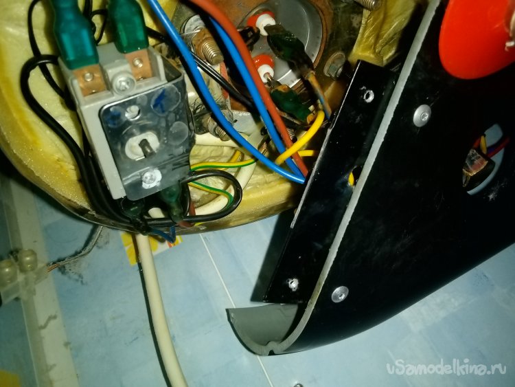 Под этой крышкой находится термо предохранитель, который у меня срабатывал пару раз, там же тэны и силовой блок управления тэнами.