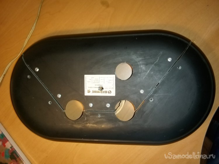 Также вырезал декоративную накладку из тонкого пластика, и приклеил на двухсторонний скотч.