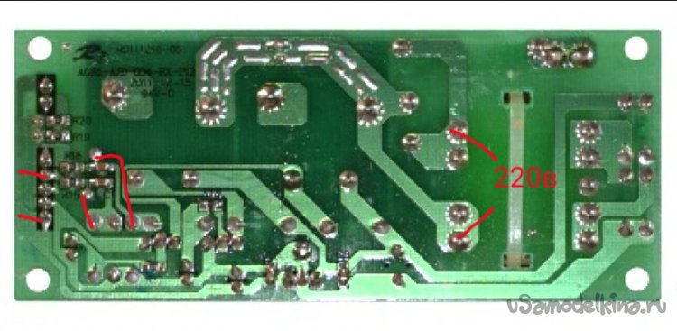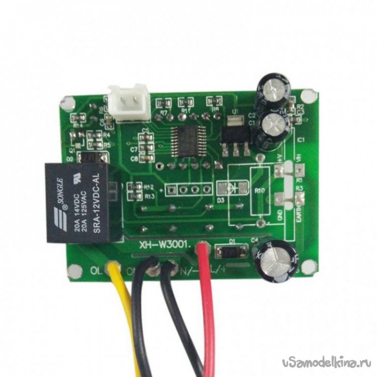 На силовом блоке водонагревателя нужно перемкнуть cmd конденсаторы, на входных цепях управления. Припаять провода на входы этих цепей, (два тэна, два реле, два входа), в моем случае я использую один тэн, следовательно одно реле и один вход. В случае использования двух тэнов, придется установить дополнительный переключатель (один или два тэна на нагрев), на эти входы. Токи там мизерные, поэтому подойдёт любой малогабаритный. Также припаять провода для подачи 220в на XN-W3001.