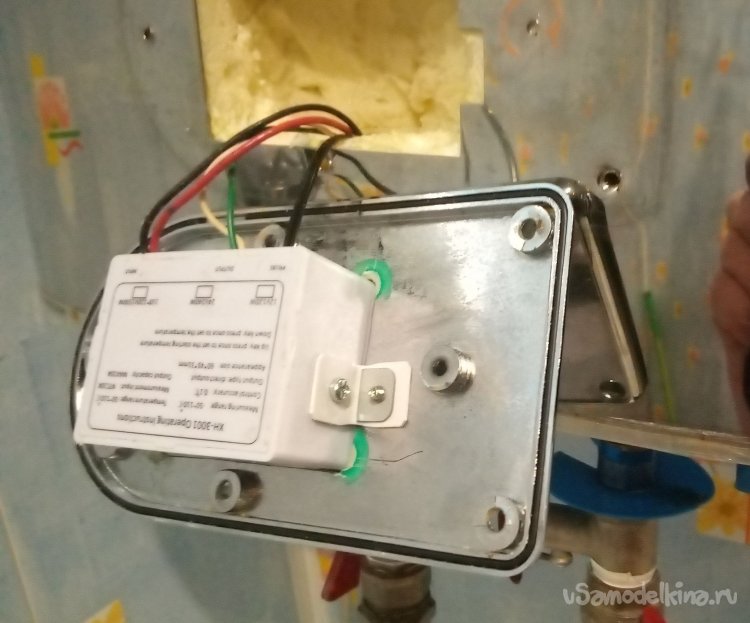 Осталось вырезать окно в декоративной панели под XN-W3001, закрепить его там, подать 220в с блока управления, и подключить цепи управления силового блока. Датчик температуры устанавливается на штатное место водонагревателя (в тэне для этого есть глухая трубка).
