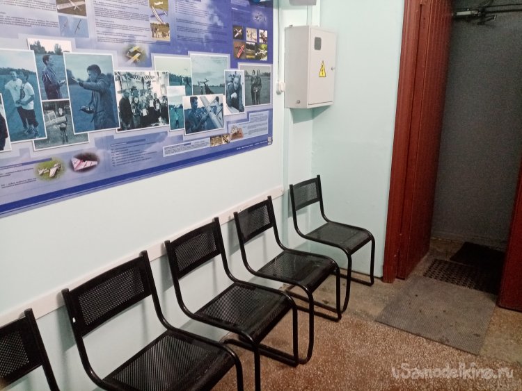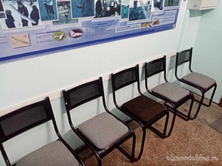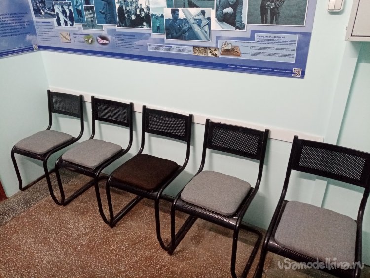 В прихожей модельного клуба стоят два ряда металлических стульев для посетителей. Иногда там переодеваются в рабочую одежду наши ученики. Ожидают своих детей после занятий родители. Внешний вид у них достаточно хороший для такого места. Но какой-то казенный, как в присутственных местах, намекающих посетителям не задерживаться.