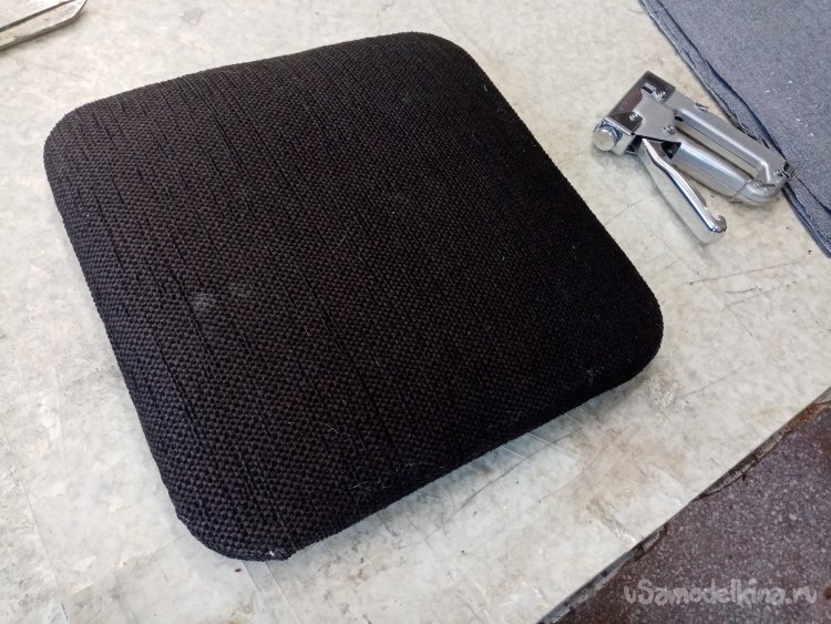 И даре в порыве энтузиазма обтянул остальные четыре сиденья серой обшивкой. И опять небольшие проблемы с закругленными краями. Не важно как все выглядит с обратной стороны. С лица все красиво.