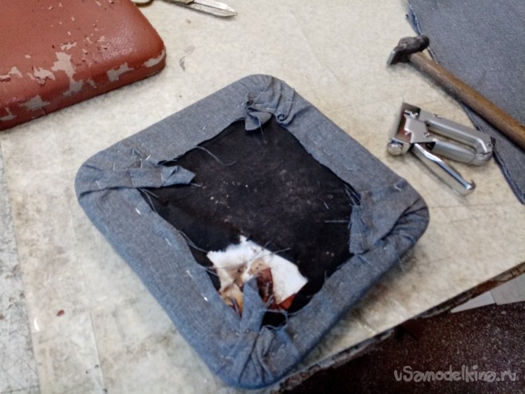 Наконец обтяжка завершена, можно приступать к модернизации металлических стульев.