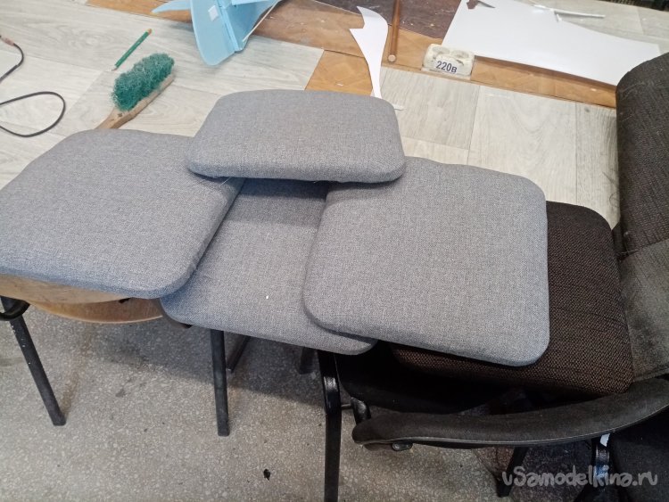 Затем принялся кроить и планировать. Материала хватило с избытком на пять сидений.