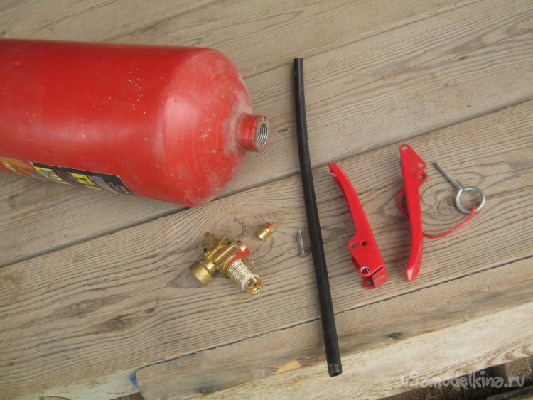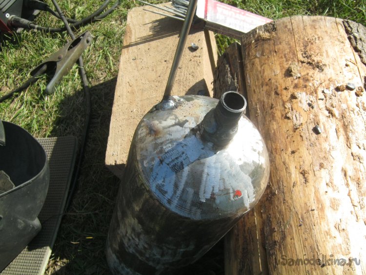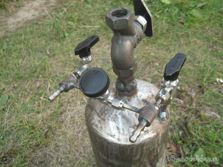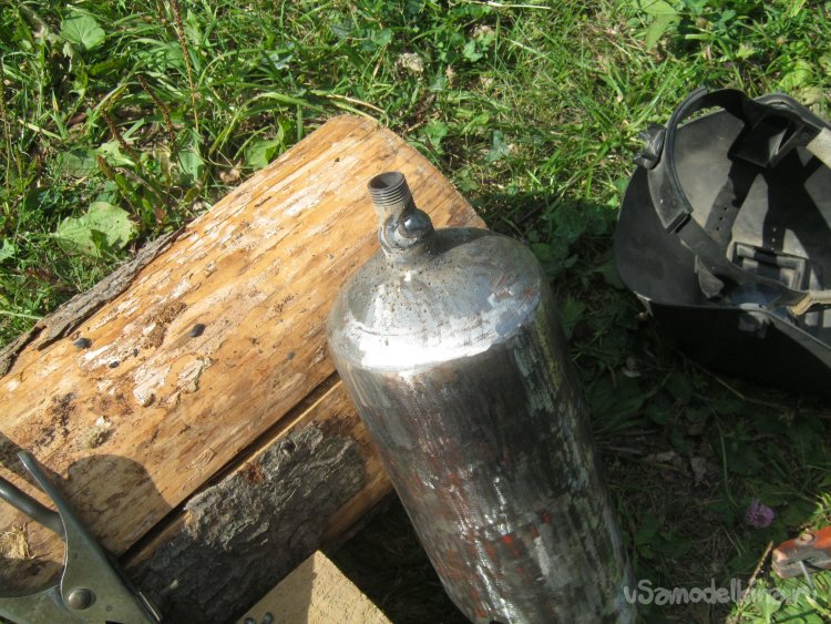 Фото 4. В качестве прочного корпуса барботера применен баллон от разряженного 3 л углекислотного огнетушителя