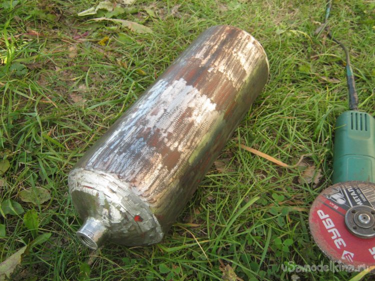 Фото 7. Абразивным диском УШМ зачистил баллон от табельной окраски