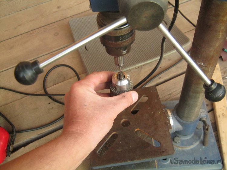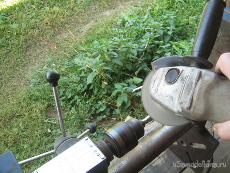 Фото 11. В положенном набок сверлильном станке толстым абразивным диском УШМ выточил «ёлочки» на патрубках, отшлифовал несколькими номерами наждачки