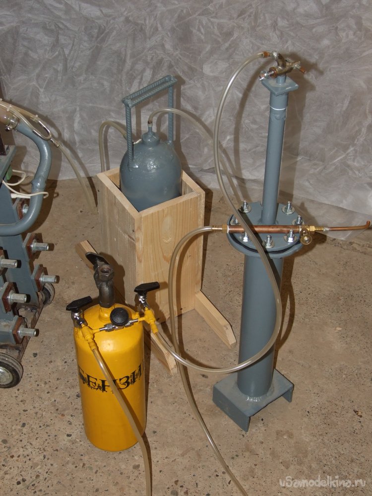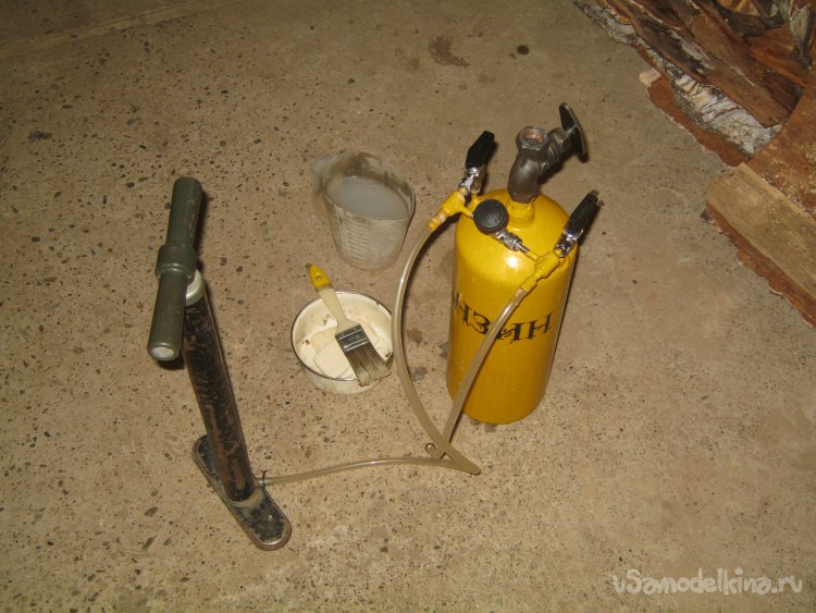 Фото 16. Проверил высохший прибор на герметичность мыльной водой – заглушил один из патрубков, второй присоединил к автомобильному насосу, открыл все краники кроме заливочного и сильно накачал сосуд. Обмылил все соединения. Мыльных пузырей нет – герметично